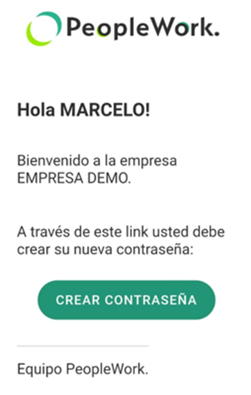 empresa te enviará un correo para crear tu contraseña.