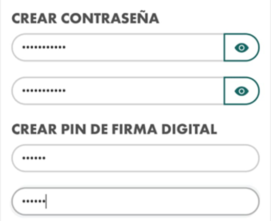 acceder a la Plataforma. Tienes que crear una contraseña y pin de firma