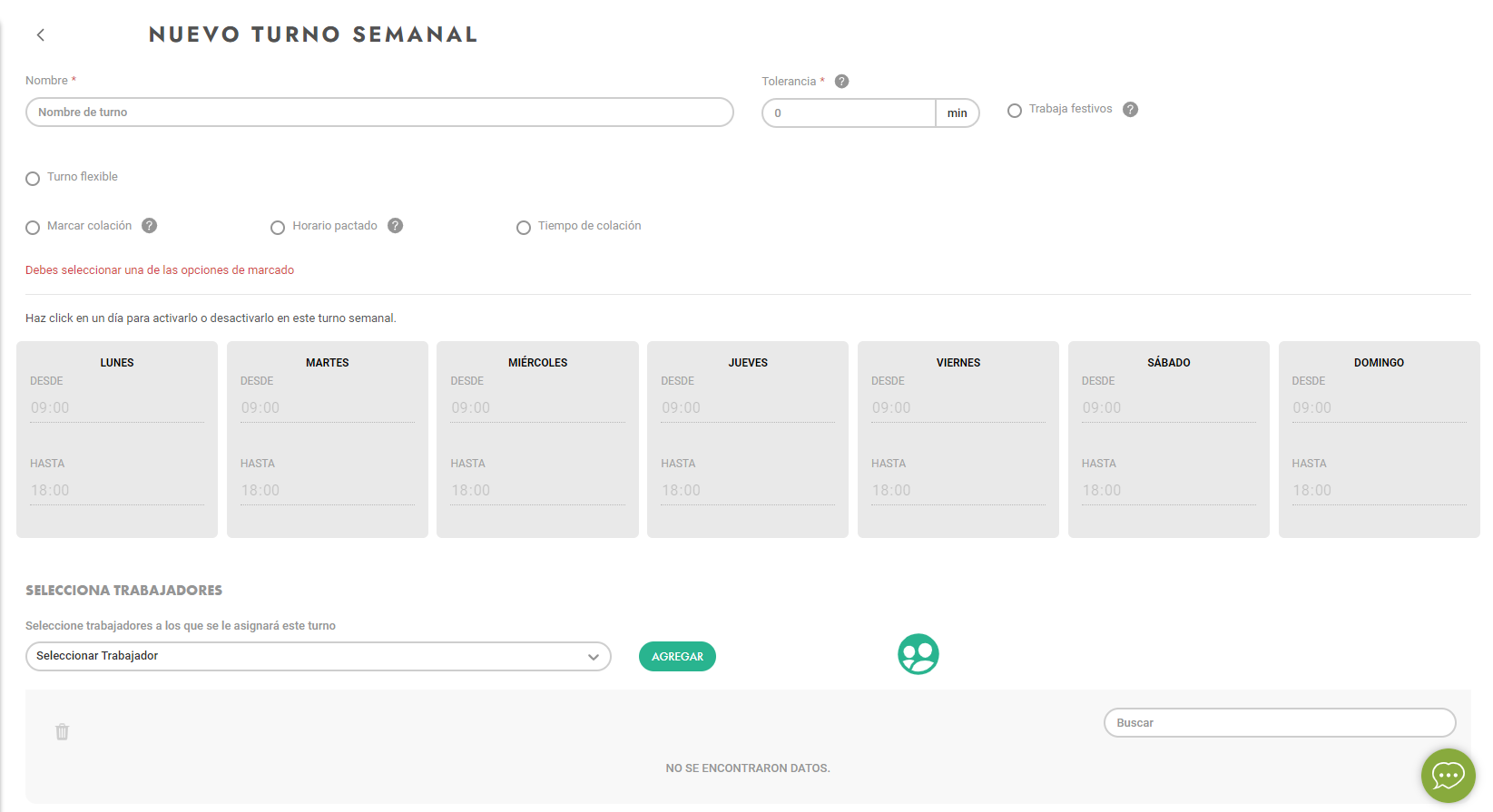 festivos: si el turno a configurar incluye un festivo y será trabajado debe