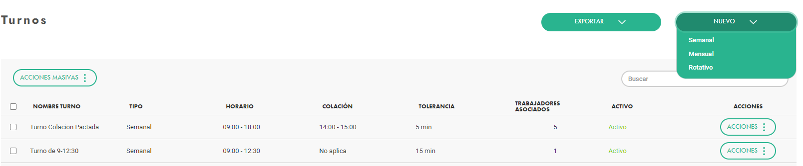 Al entrar al sistema PeopleWork acceder al panel del lado izquierdo en el renglón de CONTROL DEL TIEMPO - CONFIGURACIÓN DE TURNOS Se mostrará la pantalla siguiente con la información respectiva a los turnos creados Para cada turno existen distintas ...